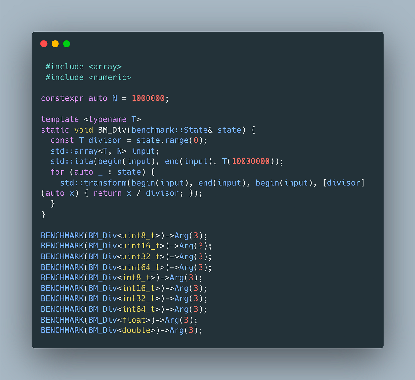 We all know that division is the hardest arithmetic operation - remember those long division lessons? It would be sensible to assume that the wider the type - the more time it takes to perform division. And those pesky floats and doubles are probably even slower. But have you ever measured the difference? I haven’t, until today that is.